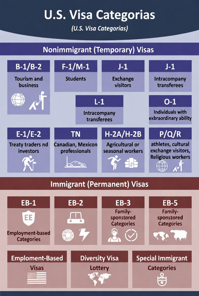 The U.S. has **dozens of visa categories** broadly divided into: