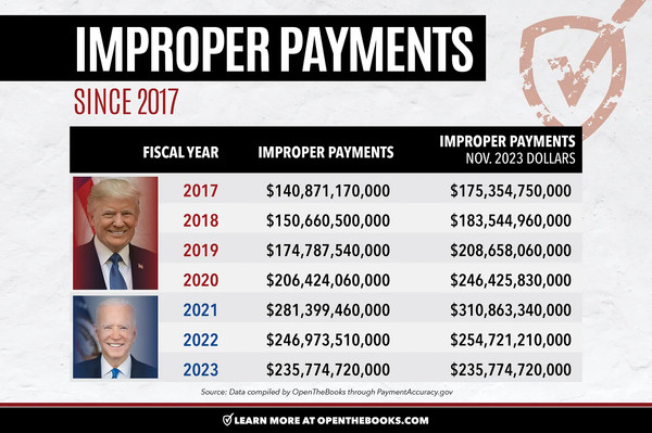 However, this figure is still significantly lower than the $236-281 billion annual improper payments seen during Biden's first three years, when COVID-era programs were active.