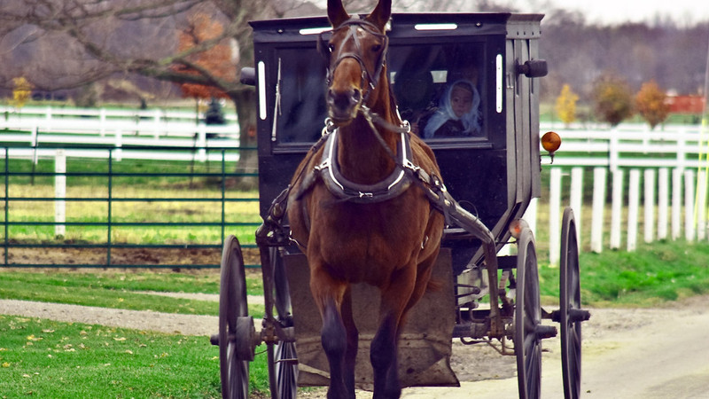 Both the buggy and truck were traveling west on State Road 4 when the truck collided with the back of the horse drawn cart.